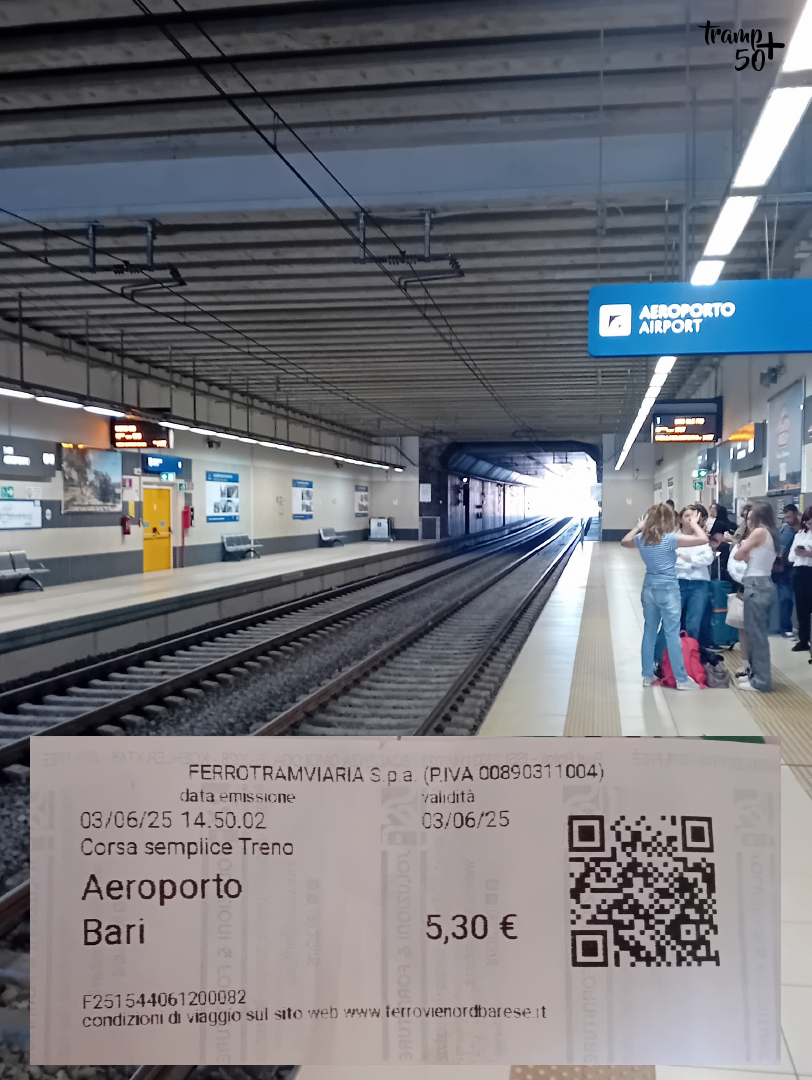 My wybraliśmy naszym zdaniem najłatwiejszą, ale tym samym najdroższą opcję, jaką jest przejazd pociągiem. Bilet w jedną stronę dla jednej osoby to koszt 5.30€, niezależnie czy bilet kupicie w kasie, czy w automacie. Podróż do stacji Bari Centrale trwa około pół godziny.