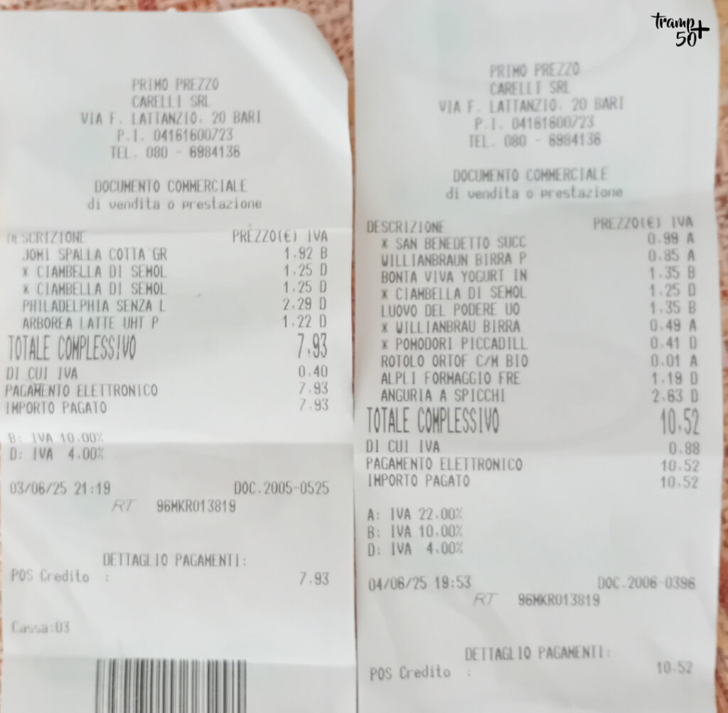 Zdziwiło nas to, że w Bari nie ma małych sklepów takich jak lokalny spożywczak czy piekarnia. Dużo łatwiej znaleźć kiosk z gazetami czy kawiarnię. Szczęśliwie mieliśmy blisko dyskont Primo Prezzo, a przy stacji kolejowej jest Lidl.