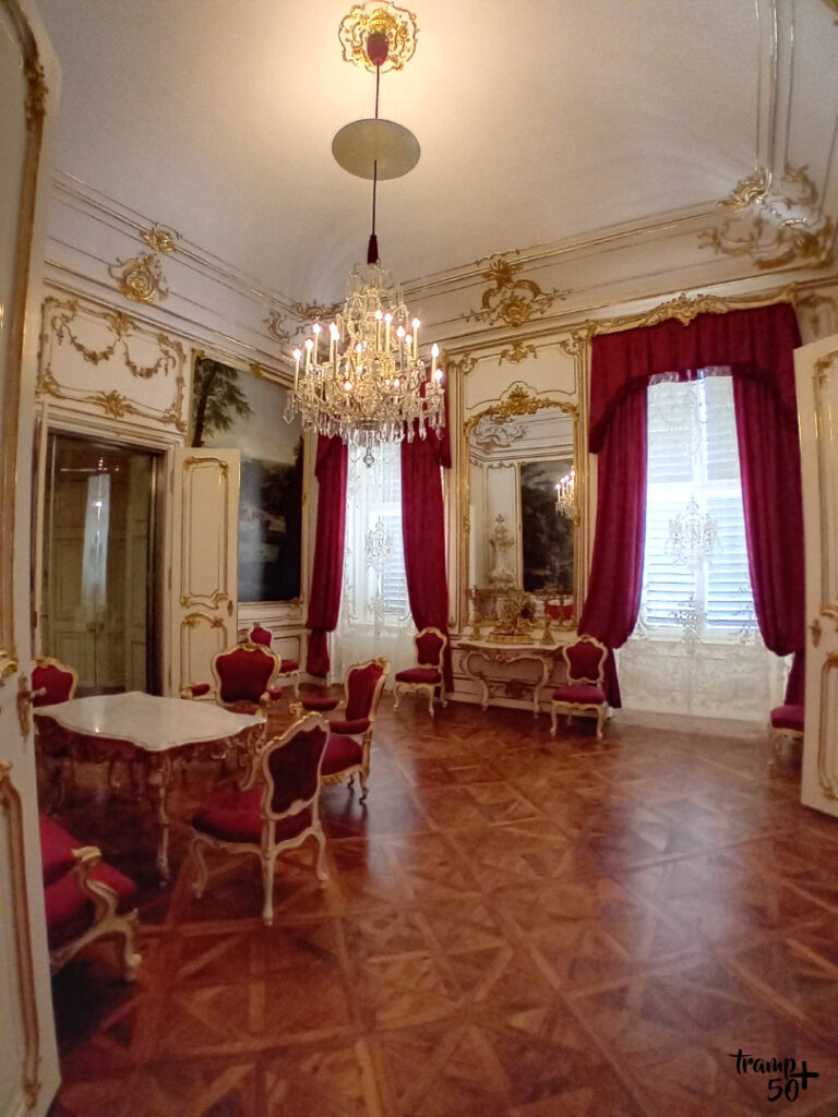 Sercem Schönbrunn jest oczywiście sam pałac z jego pięknie zachowanymi cesarskimi apartamentami. Możesz zwiedzić pokoje Marii Teresy, cesarza Franciszka Józefa i jego legendarnej żony Sisi. Do wyboru jest kilka tras zwiedzania. My wybraliśmy tę najkrótszą, która i tak daje pojęcie o rozmachu, z jakim urządzono wnętrza. Szczególnie zwiedzanie ogromnej sali balowej pozwala przenieść się w czasie i poczuć atmosferę dworskiego życia.