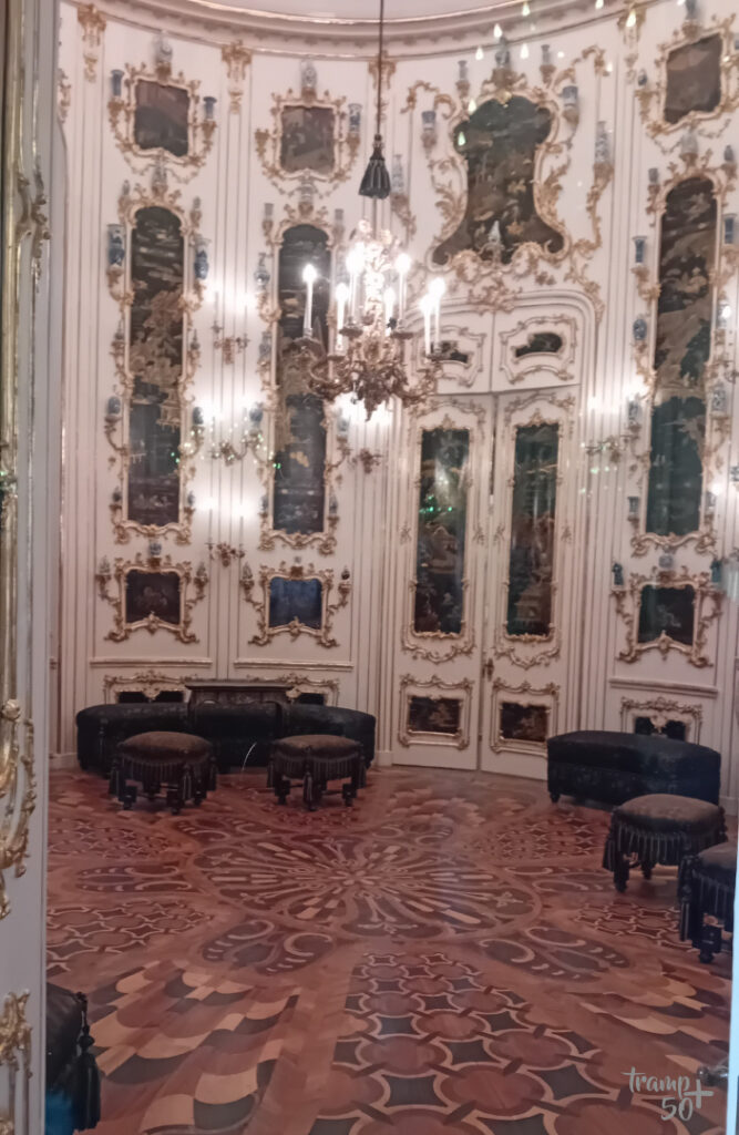 Malowidła na sufitach, sztukaterie, złocenia i ogromne żyrandole zrobiły na nas spore wrażenie. Przyjęcia musiały być naprawdę bardzo wystawne.